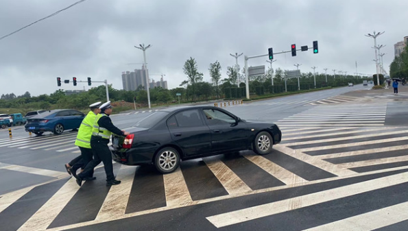 5月11日9時(shí)許,該大隊(duì)治超中隊(duì)在道縣營(yíng)陽(yáng)大道云溪府路段開(kāi)展路檢路查時(shí),發(fā)現(xiàn)前方紅綠燈處一輛黑色小汽車打著雙閃停在機(jī)動(dòng)車道上。見(jiàn)狀,執(zhí)勤民輔警立即上前了解情況,駕駛?cè)朔Q其車輛因故障拋錨,無(wú)法啟動(dòng)。為避免車輛長(zhǎng)期停滯在路中間造成交通擁堵,民輔警立即上前幫助駕駛?cè)藢④囕v推移至安全區(qū)域,保障了該路段道路交通安全、暢通。(文/何斌 何湘榮)