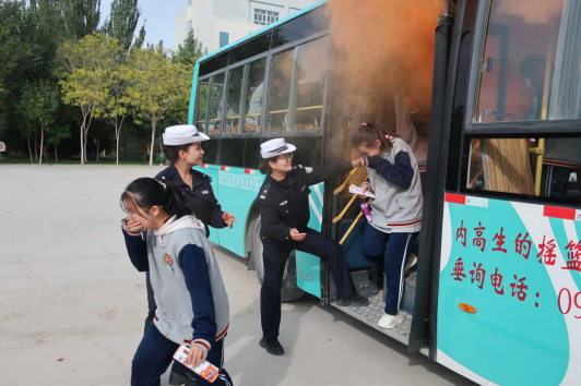 在學(xué)校的大力配合下,兩輛大型客車成為“模擬”課堂、“移動(dòng)”教材,在校園內(nèi)外民警先后組織中學(xué)生們分期分批開(kāi)展了客車內(nèi)發(fā)生“火災(zāi)”應(yīng)急逃生演練、大型客車“盲區(qū)”體驗(yàn)、正確佩戴安全頭盔示范等“沉浸式”體驗(yàn)“零距離”普法,通過(guò)別開(kāi)生面普及防災(zāi)減災(zāi)科普知識(shí)和交通安全法律法規(guī),吸引廣大中學(xué)生爭(zhēng)先恐后參與體驗(yàn)、互動(dòng)交流,真正感受到了尊法學(xué)法用法守法的價(jià)值,在校園里掀起了一股“知危險(xiǎn)會(huì)避險(xiǎn)、守法規(guī)知禮讓”的新熱潮。