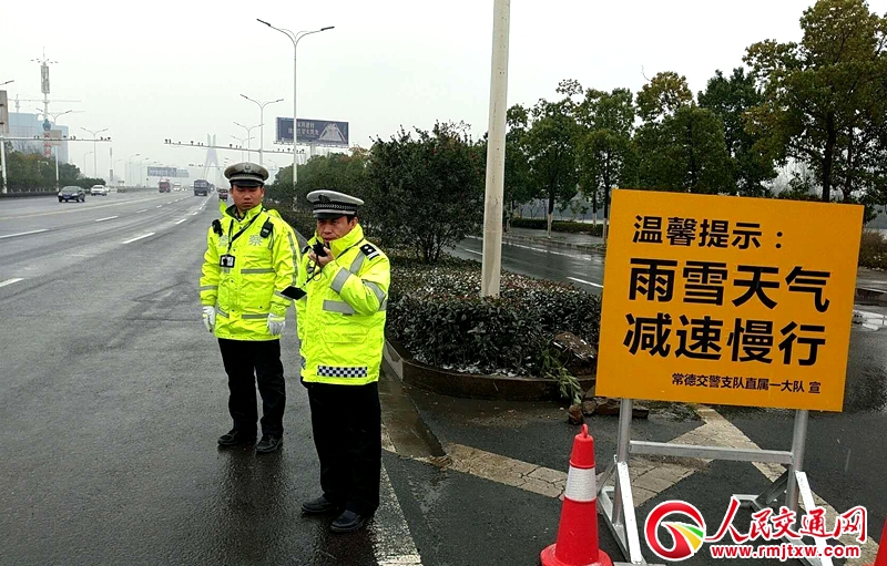 人民交通網(wǎng)訊(通訊員 劉小滿 蘇瑩)12月28日凌晨,2018年最后一場雨雪惡劣天氣如期而至,目前,常德城區(qū)還在繼續(xù)下著雨夾雪,道路濕滑,交通通行受到影響。常德交警支隊(duì)直屬一大隊(duì)全警上路,戰(zhàn)雨雪、斗嚴(yán)寒,全力以赴護(hù)衛(wèi)著轄區(qū)道路交通暢安。