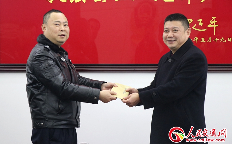 大隊(duì)長(zhǎng)劉科向張建平簡(jiǎn)要匯報(bào)了2019年春運(yùn)工作啟動(dòng)以來的大隊(duì)在交通管理、違法查糾等方面工作情況和春節(jié)期間值班備勤工作部署。張建平指出,2018年,直屬一大隊(duì)在支隊(duì)黨委和大隊(duì)總支的堅(jiān)強(qiáng)領(lǐng)導(dǎo)下,全體民警、輔警辛勤付出,盡職奉獻(xiàn),年度績(jī)效評(píng)估獲評(píng)全市優(yōu)秀等次,各項(xiàng)工作再創(chuàng)佳績(jī)。他希望大隊(duì)在新的一年里繼續(xù)發(fā)揚(yáng)敢打硬仗、能打勝仗的優(yōu)良傳統(tǒng),團(tuán)結(jié)奮斗,打贏打好2019年春運(yùn)工作第一仗,為全年各項(xiàng)工作再上臺(tái)階奠定堅(jiān)實(shí)基礎(chǔ),以更加優(yōu)異成績(jī)向新中國(guó)70華誕獻(xiàn)禮。同時(shí),他叮囑大隊(duì)領(lǐng)導(dǎo),一定要關(guān)心好、愛護(hù)好警員,做好困難民警、輔警的幫扶工作,做好春節(jié)期間值班備勤的生活安排和執(zhí)法安全防護(hù)工作。張建平請(qǐng)大隊(duì)領(lǐng)導(dǎo)代為轉(zhuǎn)達(dá)支隊(duì)黨委對(duì)全隊(duì)警員的新春祝福,并代表支隊(duì)黨委送上了慰問金。