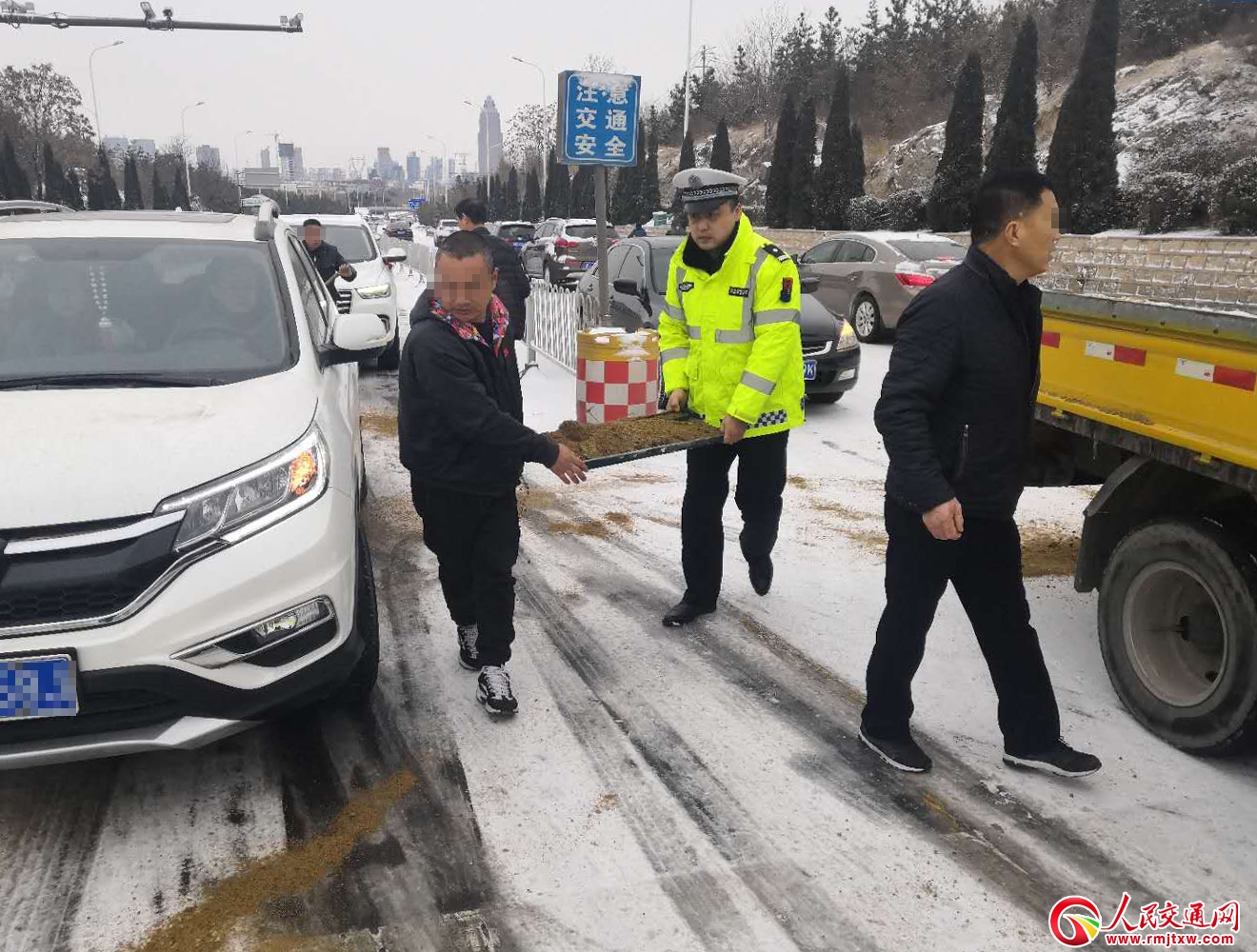 淄博公安交警在城區(qū)重點(diǎn)路口設(shè)立執(zhí)勤崗,對過往車輛進(jìn)行疏導(dǎo),確保車輛順利通行。在郊區(qū)道路上加強(qiáng)勤務(wù)調(diào)度和警車巡邏,開啟警燈通過喊話器提醒過往車輛減速慢行。積極協(xié)調(diào)相關(guān)部門做好融雪除雪工作,確保道路及時消除安全隱患。各交警大隊充分發(fā)揮“兩站兩員”作用,動員轄區(qū)交通安全管理員上路巡查,在重點(diǎn)路段路口勸導(dǎo)交通違法行為。同時,通過廣播、“微信”“微博”、LED宣傳屏等媒體平臺,廣泛發(fā)布天氣預(yù)警信息,宣傳雨雪天氣行車注意事項,提醒駕駛?cè)藴p速慢行,謹(jǐn)慎駕駛。