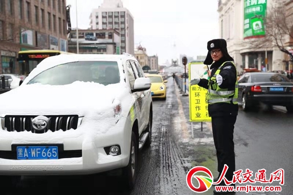 此外,哈支隊(duì)還積極與市政、環(huán)衛(wèi)等政府相關(guān)清冰雪部門聯(lián)合作戰(zhàn),重點(diǎn)加強(qiáng)對市區(qū)內(nèi)坡路及上橋口的清雪工作。7時(shí)50分許,在霽虹橋沿線,交警道里大隊(duì)警力與城管局清雪部門工作人員緊張對接后,通過采取警車引導(dǎo)、路口指揮放行等方式組織大型清雪作業(yè)車輛對周邊等重點(diǎn)街路上的坡路開展多頻次往返作業(yè),以減少降雪對坡路通行的影響,并為晚高峰有序通行提供保障。