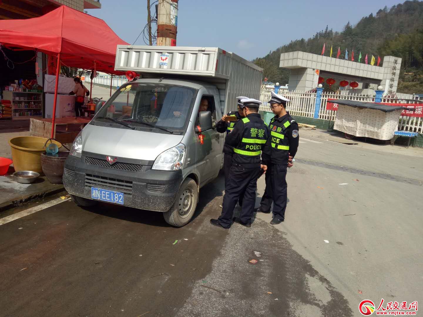 人民交通網(wǎng)訊(通訊員 陳鈺洲)“張大叔,你騎摩托車去趕集呀,要佩戴安全頭盔呢!不戴頭盔騎乘摩托車是很危險的行為”3月20日,是會同縣漠濱鄉(xiāng)趕集日,在該鄉(xiāng)中心小學(xué)門前三岔路口,交通輔警楊虬、唐敬凱正在對一名不遵守交通規(guī)則的村民進(jìn)行勸導(dǎo)。