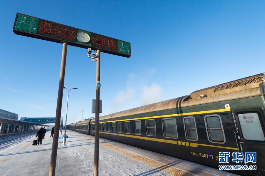 繁星裝點(diǎn)夜空,白雪覆蓋林海。傍晚,K7039次列車沿鐵軌呼嘯而過,從哈爾濱始發(fā),駛過1223公里路程,16小時(shí)20分鐘后抵達(dá)漠河。