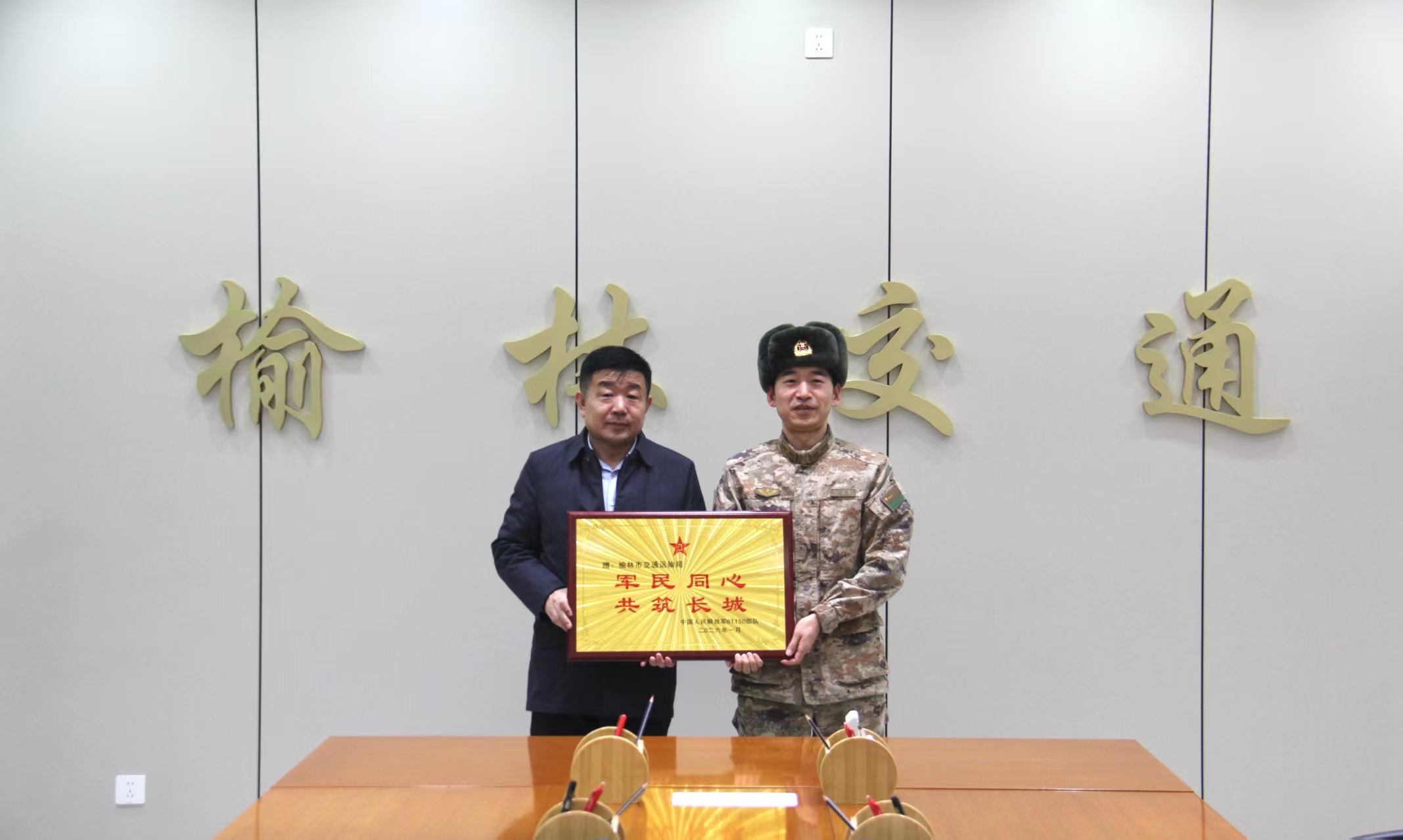 ——榆林市交通運(yùn)輸局獲贈“軍民同心,共筑長城”榮譽(yù)牌匾