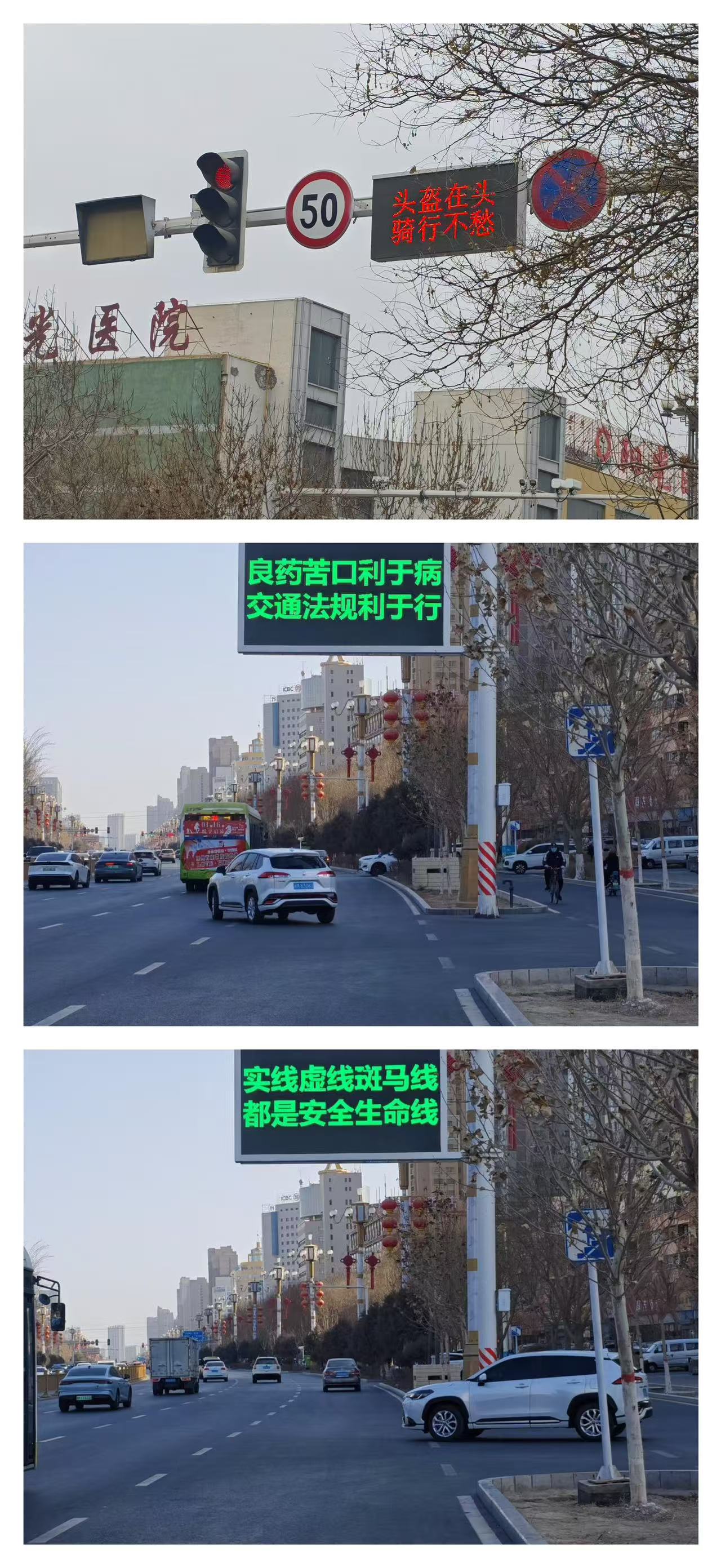 敖丙敖光敖閏,熬夜開(kāi)車(chē)犯困;王子公主請(qǐng)戴好頭盔喲;舍小“盔”,吃大虧;草莓藍(lán)莓,頭盔戴沒(méi);頭盔在頭,騎行不愁;哈酒上了頭,開(kāi)車(chē)丟自由;停車(chē)不越線,安全風(fēng)景線;交友誘導(dǎo),入局必套;刷單返利,無(wú)利反虧;投資高息,小心血本……這些押韻俏皮、接地氣的標(biāo)語(yǔ),悄然亮相庫(kù)爾勒市各個(gè)主要路口電子誘導(dǎo)屏上滾動(dòng)播放。在電子大屏上滾動(dòng)播放:“良藥苦口利于病,交通法規(guī)利于行;實(shí)線虛線斑馬線,都是安全生命線;人車(chē)互禮讓?zhuān)缆犯鼤惩?hellip;…”這種“有梗”宣傳,跳脫出禁止、嚴(yán)禁的冰冷語(yǔ)境,用群眾語(yǔ)言講交通安全和反詐道理,讓文明安全和防范電信詐騙提示不再是“耳邊風(fēng)”,而是“心頭話”。當(dāng)整個(gè)社會(huì)形成禮讓氛圍,便凝聚為一種強(qiáng)大的文化力量。