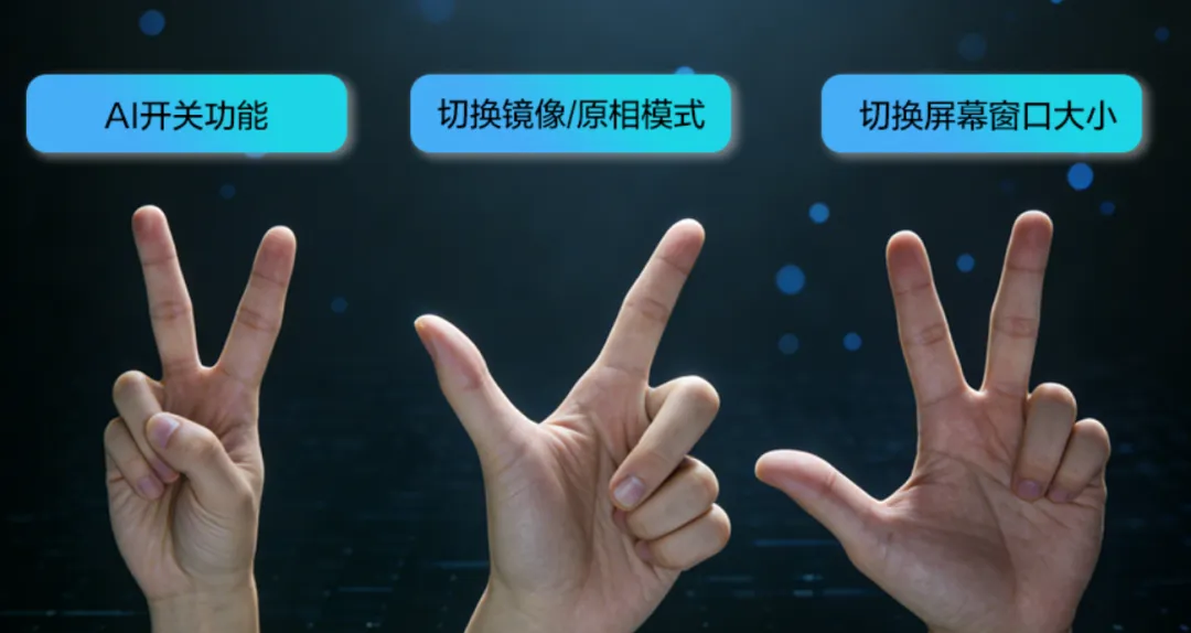 此外,T25ME系列的還支持手勢識別控制:比如雙指比出“耶”的手勢,代表AI開關(guān)的功能;拇指和食指比出“八字”手勢則代表了切換鏡像或者原相模式;拇指、食指和中指共同比出“三指”的手勢,則代表切換屏幕窗口的大小,發(fā)言人可以精準(zhǔn)鎖定重點(diǎn)展示內(nèi)容,讓會議交互過程的操控方式更加自由、簡便。