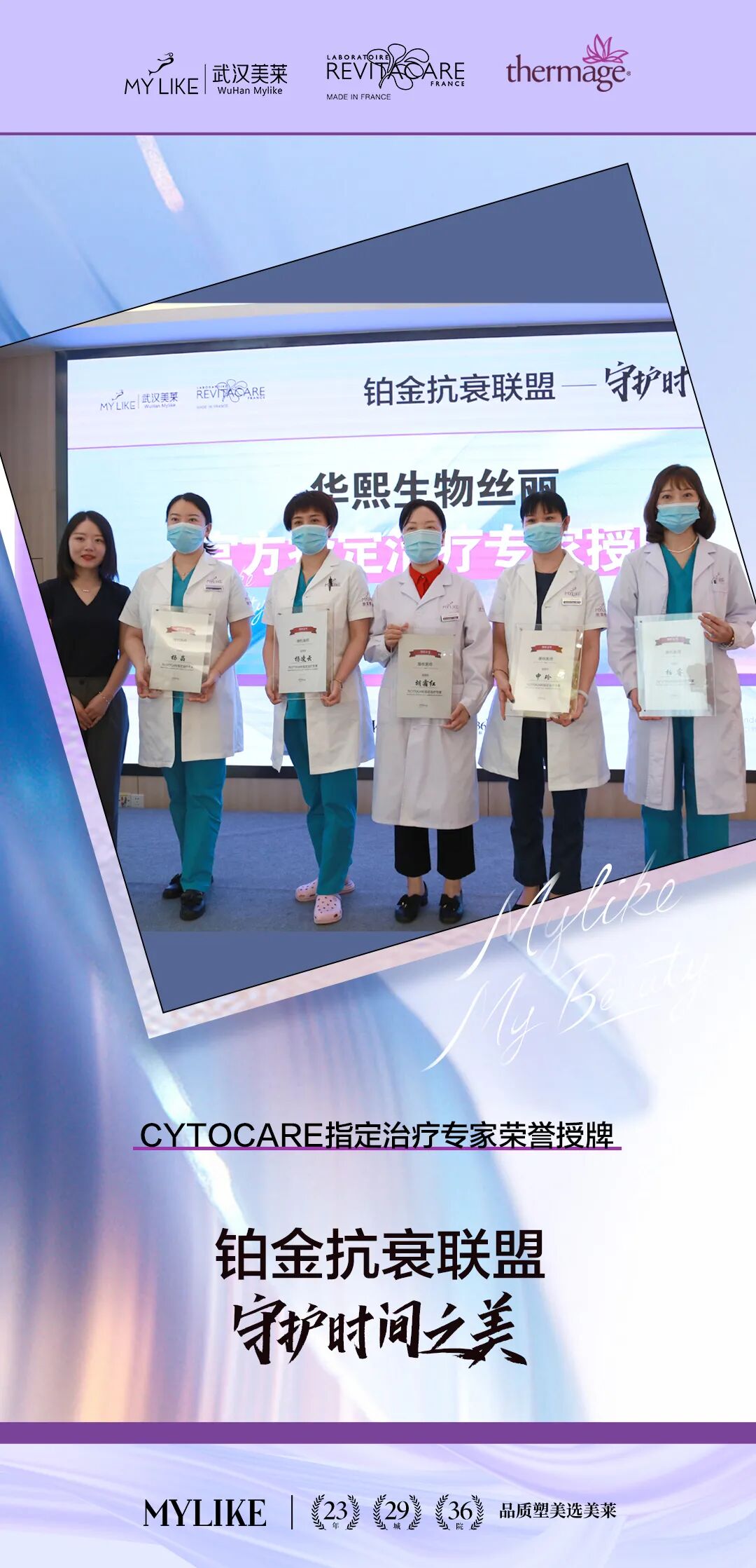 9月19日,武漢美萊“守護(hù)時(shí)間之美”鉑金抗衰聯(lián)盟活動(dòng)火熱開啟。同時(shí),我們也見證了CYTOCARE為武漢美萊指定治療專家的榮譽(yù)授牌時(shí)刻。