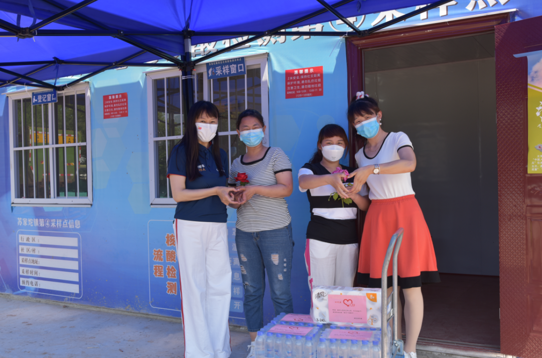 在現(xiàn)場,看到她們卸下被汗水浸透的防護服,額頭上滿是防護服留下的痕跡,汗水順著衣袖不斷地淌下,真叫人心疼!徐校長為兩位醫(yī)護小姐姐送上充滿愛意的小驚喜——親手從海駕花園采摘的鮮花,“您們辛苦了,感謝您們辛苦的付出,如果還需要我們做什么,一定要告訴我們!”