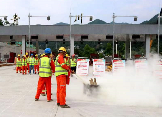 6月21日,四川北新天曌投資發(fā)展有限公司聯(lián)合中交機(jī)電工程局有限公司廣平高速項(xiàng)目JD3合同段在青川收費(fèi)站開展以人員觸電、電器著火為模擬情況的綜合應(yīng)急救援演練。JD3合同段全體人員、相關(guān)參建單位分管安全領(lǐng)導(dǎo)和安全管理人員現(xiàn)場(chǎng)觀摩。
