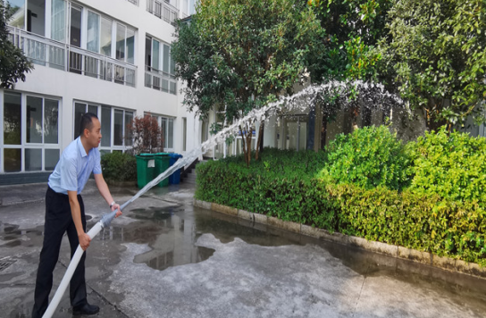 給花草樹木“補水”。連日高溫讓庭院的花草樹木“低下了頭”,管理所科學(xué)合理安排澆水時間,采用錯峰澆水的方式,在清晨、傍晚為植物澆水,這避免午間澆灌燙傷植物根系,確保院內(nèi)外植物在炎炎夏日依然綠意盎然。