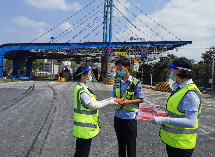自本次十堰地區(qū)疫情發(fā)生以來(lái),六里坪高速卡口的防疫人員夜以繼日,堅(jiān)守崗位,奮戰(zhàn)在一線。近來(lái)十堰持續(xù)高溫天氣,頻頻“熱成全國(guó)之最”?吹秸究诳c(diǎn)防疫人員在烈日炙烤下汗流浹背的樣子,收費(fèi)站志愿者們?yōu)轳v守卡點(diǎn)的“疫”線工作人員送去西瓜、礦泉水等防暑降溫物品。志愿者們細(xì)心地將西瓜、礦泉水送到值守人員手中,通過(guò)一個(gè)微笑、一瓶水、一份西瓜,用行動(dòng)表達(dá)對(duì)防疫人員晝夜不停堅(jiān)守站口守護(hù)的感謝。