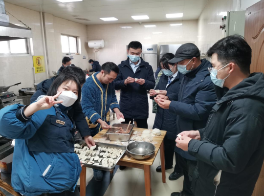 在管理所廚師的帶領(lǐng)下,員工們歡聚一堂,分成調(diào)餡組、搟面皮組和包餃子組,從揉面、搟皮到包餃子,大家分工協(xié)作,合作默契。“我想吃芹菜餡的”“我想吃豬肉大蔥的”,在歡聲笑語中,大家相互探討包餃子技巧,分享包餃子經(jīng)驗,