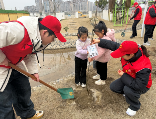植樹(shù)現(xiàn)場(chǎng),港航職工、社區(qū)志愿者與孩子們分工合作,揮鍬鏟土、提水澆灌、扶正樹(shù)苗、踩實(shí)土壤,每一個(gè)步驟都認(rèn)真細(xì)致。志愿者們一邊示范植樹(shù)技巧,一邊叮囑孩子們“樹(shù)苗要扶正,土要踩實(shí),小樹(shù)才能茁壯成長(zhǎng)”。孩子們動(dòng)作雖稚嫩卻格外專注,在親手為小樹(shù)掛上樹(shù)牌的同時(shí),默默許下“我與小樹(shù)共成長(zhǎng)”的美好心愿,在心中種下了生態(tài)環(huán)保的種子。