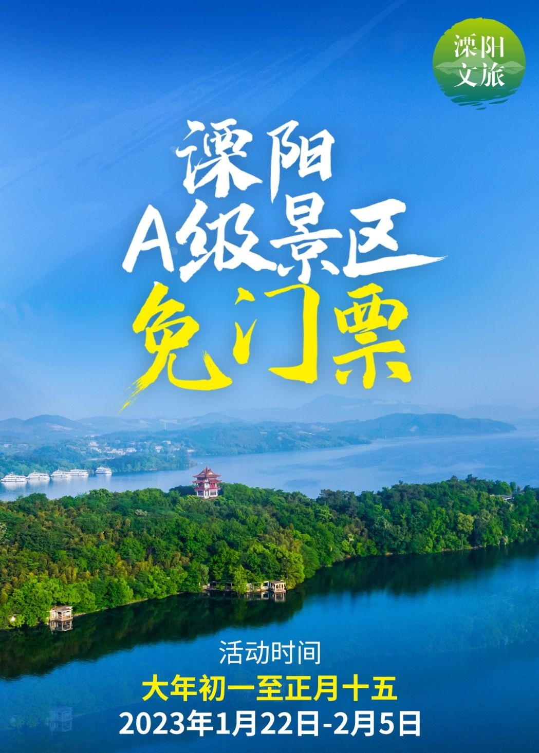 大年初一至正月十五(2023年1月22日至2023年2月5日)期間,溧陽所有A級景區(qū)均免門票,游客可提前一天在“有時溧陽”小程序平臺進行預約。
