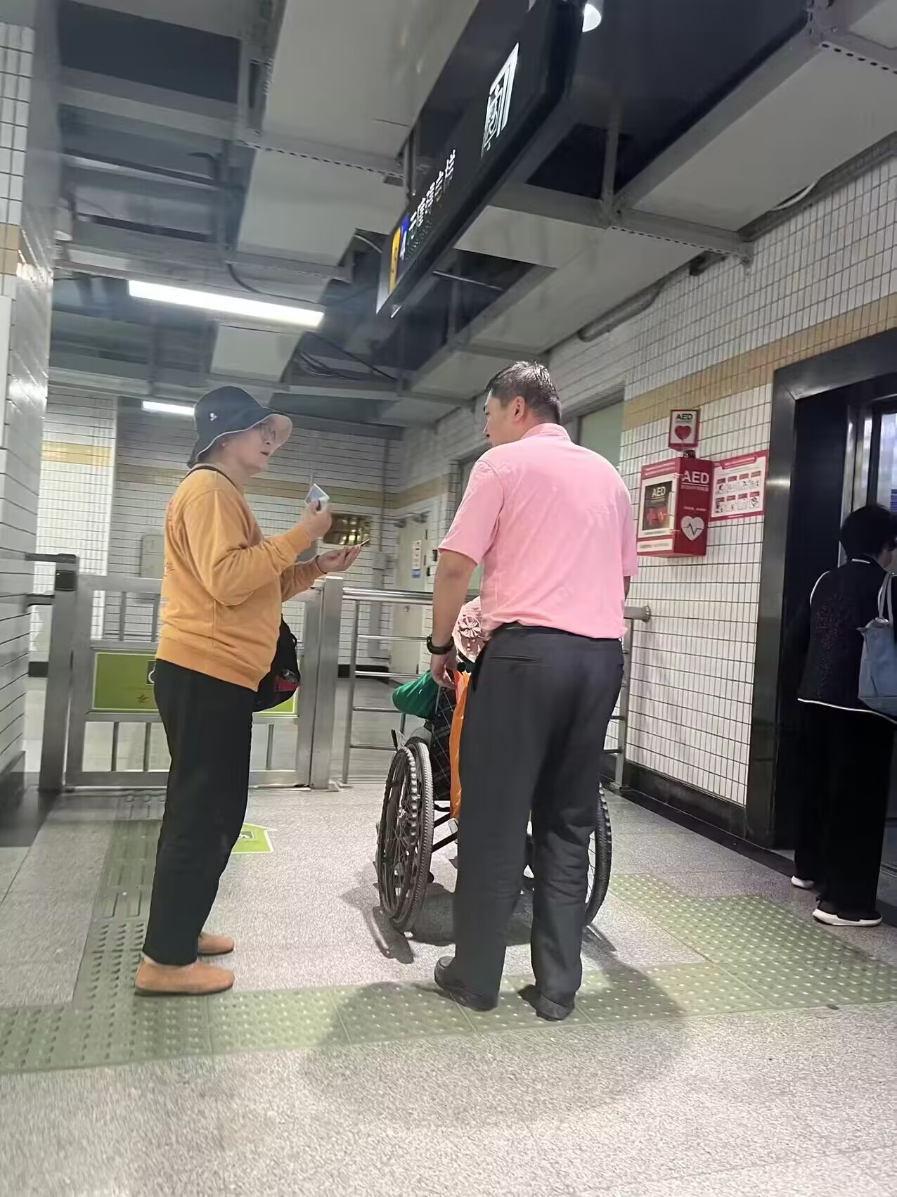 經(jīng)詢問得知,老人的老伴剛離世不久,她深受打擊,神情恍惚才到了扶梯口,而且電動輪椅電量不足,無法支持其安全返程回家。由于老人無子女,現(xiàn)獨自一人居住。得知情況后,劉站長便為老人打了車,同時聯(lián)系到了老人所居住的居委會,請求他們幫助,愛心接力將老人送至家中。老人對劉站長的熱心善舉深表感謝。