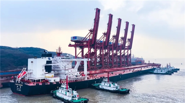 1月17日,滿載20萬(wàn)噸幾內(nèi)亞西芒杜鐵礦項(xiàng)目高品位鐵礦石的“韋立青年”輪順利靠泊馬跡山碼頭,標(biāo)志著該項(xiàng)目正式完成“從礦山到港”的全球貿(mào)易閉環(huán);1月21日,“塞佩提巴”輪靠泊綜保區(qū)碼頭,舟山市首條直航南美金磚國(guó)家的集裝箱航線正式開(kāi)通;1月下旬,“達(dá)飛澤地”輪、“韓新嘉翁”輪相繼靠泊甬舟碼頭,兩條中東集裝箱班輪航線投入運(yùn)營(yíng)。