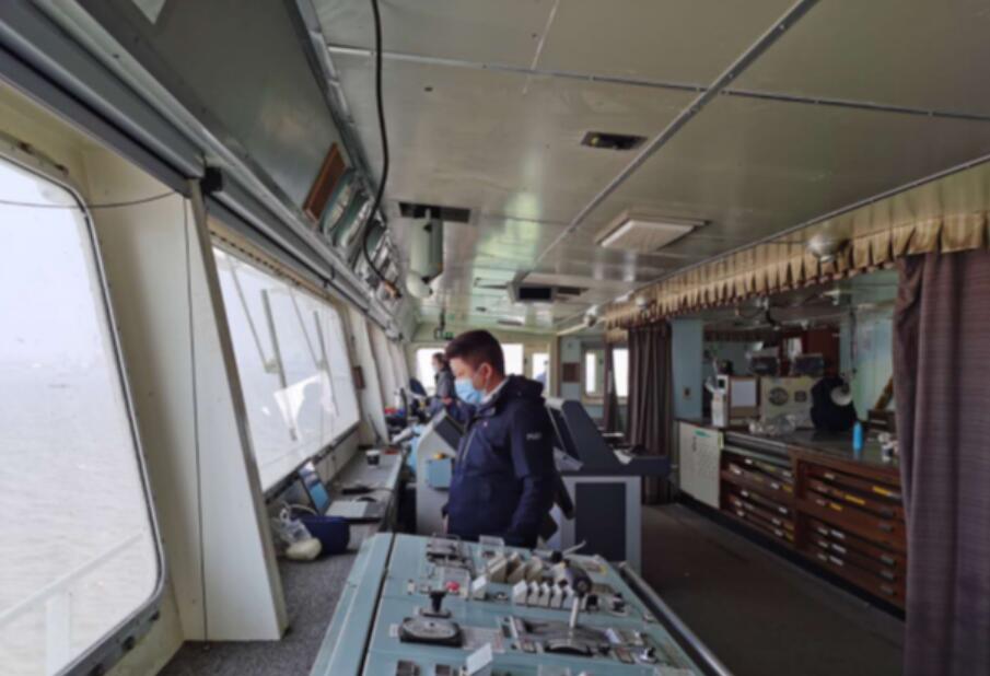 離泊前長(zhǎng)江、上海引航員同時(shí)在上海中遠(yuǎn)海運(yùn)重工有限公司長(zhǎng)興島廠區(qū)碼頭登輪,寶山交接,人員不上下乘潮進(jìn)江,在克服了太倉(cāng)港區(qū)橫越航道船多、漲水高峰流船舶密集、船隊(duì)受風(fēng)流影響大轉(zhuǎn)向操縱遲緩等諸多困難,最終安全完成引航。