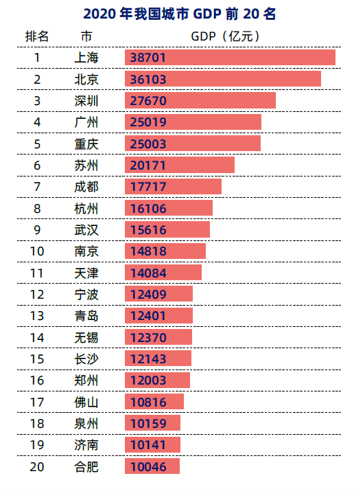 到了2020年,內(nèi)陸城市地位進一步上升。成都從2018年的第8升至第7,南京從第11位升入前10,把天津擠出了前10名。濟南、合肥GDP突破萬億,濟南上升一位,合肥進入前20強。