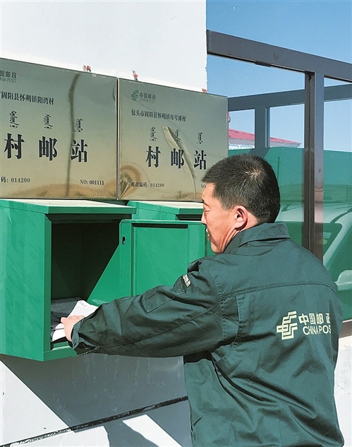 包頭市固陽縣郵政分公司投遞員每周按時(shí)將黨報(bào)黨刊投遞到懷朔鎮(zhèn)所轄村的村郵站!踉S冰奇 攝