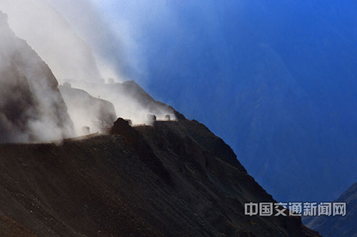 武警交通二支隊官兵養(yǎng)護(hù)保通險峻而絕美的川藏天路。劉波攝影