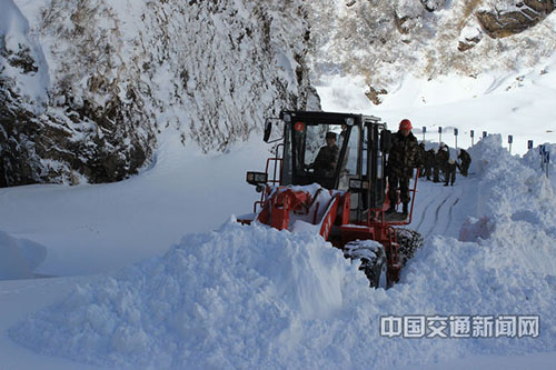 2017年3月,武警交通二支隊官兵在西藏聶拉木縣特大暴雪中搶通道路。徐小平攝影