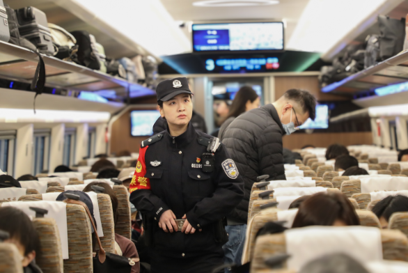 439.8米長的高鐵車廂就是她的“主場”,她要在這個(gè)移動(dòng)的轄區(qū)里連續(xù)工作近22個(gè)小時(shí)行走近3萬步,瘦小的身影穿梭在京滬、京青線的列車上,她的目光掃過行李架上每一處縫隙,指尖劃過消防器材的封簽,耳畔時(shí)刻留意著旅客的每一聲求助