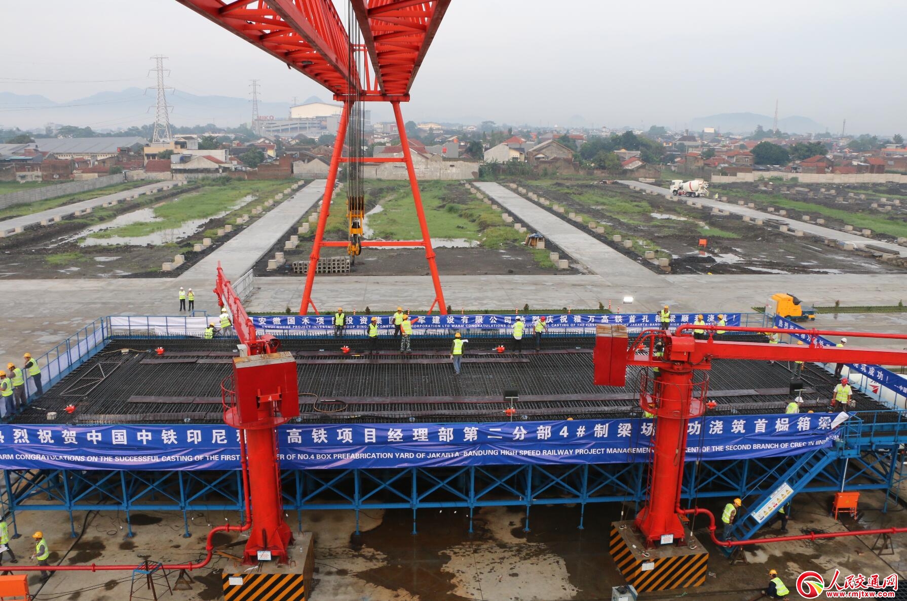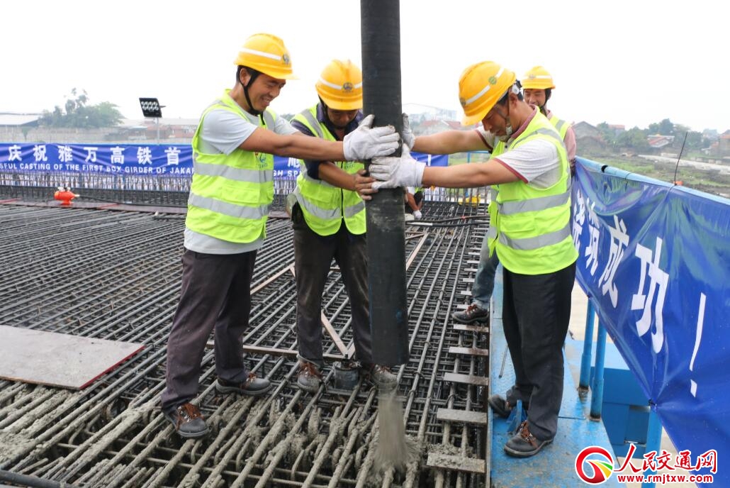 雅萬高鐵項(xiàng)目是中國(guó)“21世紀(jì)海上絲綢之路”倡議與印尼“全球海洋支點(diǎn)”構(gòu)想對(duì)接的早期收獲工程,是中國(guó)“一帶一路”落地項(xiàng)目,也是“中國(guó)高鐵”走出國(guó)門展現(xiàn)中國(guó)標(biāo)準(zhǔn)的窗口,因此首榀箱梁的成功澆筑意義重大。