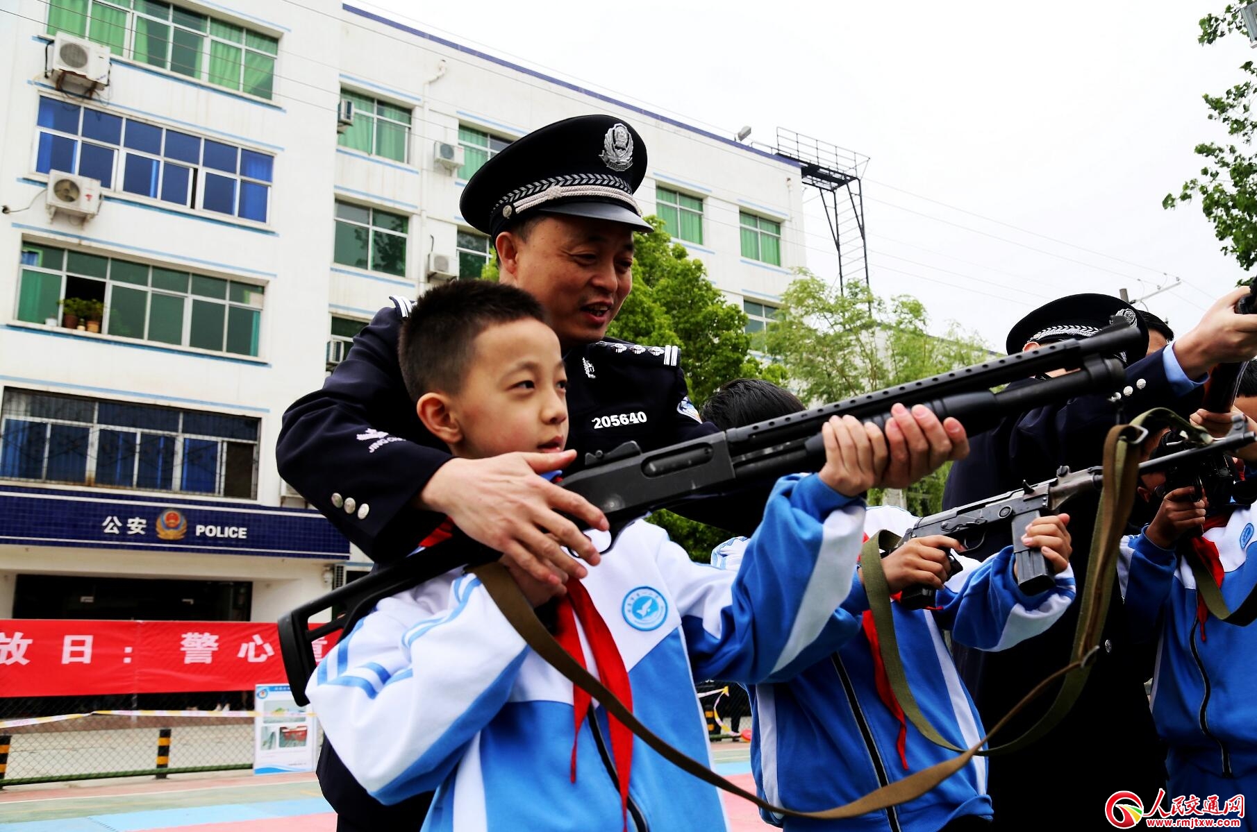2、民警現(xiàn)場邀請小朋友進行槍械體驗。