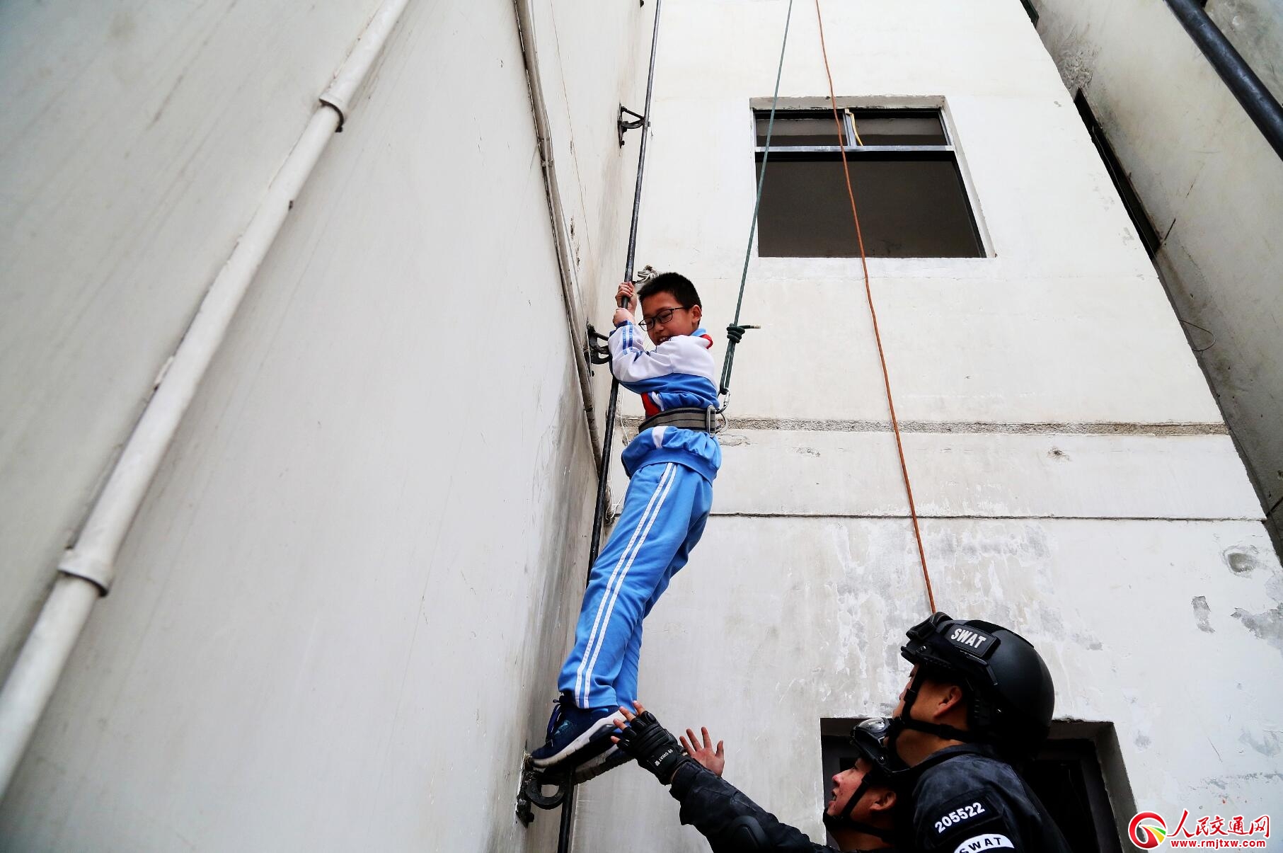 5、民警邀請參加活動小學(xué)生體驗高樓索降。