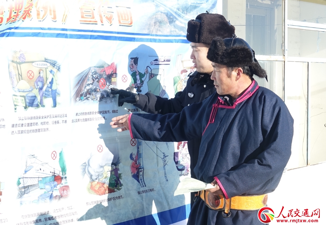 活動中,派出所民警和護路辦護路隊員共同深入牧戶家中,通過懸掛宣傳畫的方式為牧民細(xì)致講解牲畜進入鐵路安全保護區(qū)對行車安全造成的影響及法律后果,提醒牧民老鄉(xiāng)看管好自家牲畜,發(fā)現(xiàn)不法分子破壞鐵路設(shè)備設(shè)施要及時報警,警民聯(lián)手共同維護鐵路安全暢通。隨后,民警與護路隊員將春聯(lián)及日歷等節(jié)日用品送到老鄉(xiāng)手中,鼓勵沿線居民積極參與到愛路護路行動中來,確保春運期間線路安全穩(wěn)定。