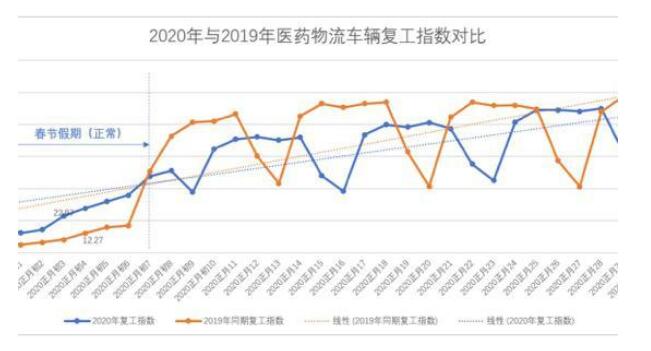 醫(yī)藥物流方面,因疫情防控和疾病救治需要,絕大多數(shù)醫(yī)藥物流車輛處于已復工狀態(tài),并且已復工車輛基本上處于滿負荷和高負荷運行狀態(tài)。