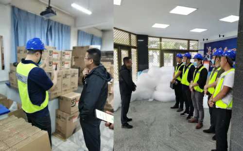 由于此次搬遷工作的開展時間節(jié)點仍處于疫情敏感期,順豐快運為了確保整個搬運流程安全,對所有參與搬運的工作人員進行多次體溫測量,并要求其在作業(yè)期間佩戴好安全帽。
