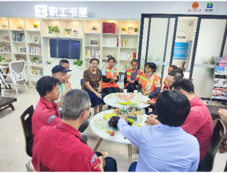 在滘口汽車站愛心驛站內(nèi),工作人員一早準(zhǔn)備好月餅、水果,臨近中午,環(huán)衛(wèi)工作、司機等戶外工作者陸陸續(xù)續(xù)到這個他們平時的“歇腳地”——愛心驛站稍作休息時,工作人員熱情地邀請他們圍桌而坐,共享中秋美食,驚喜的笑容在他們臉上綻開。“沒想到今年中秋節(jié)第一個月餅是在驛站嘗到的,平常中午休息吃飯我也經(jīng)常來這里,有這樣一個地方歇歇腳,太方便太暖心了。”保潔工李阿姨開心的說道。“謝謝你們,月餅真甜,真好吃!”進站充電的王大哥在海珠客運站戶外勞動者愛心驛站提前吃到了工作人員送來的月餅,期間,驛站工作人員親切地與戶外勞動者們話家常,大家齊聚驛站品嘗月餅、水果和茶飲。