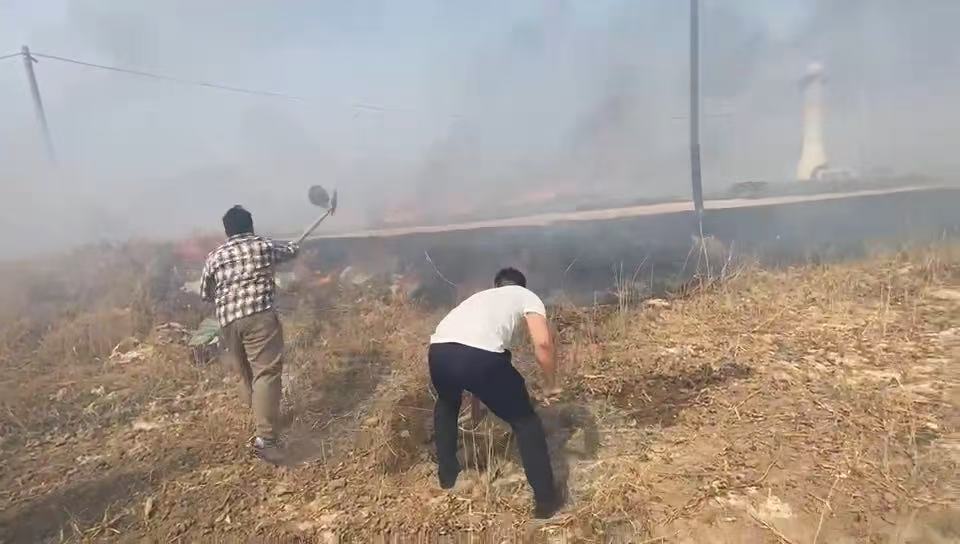 “當(dāng)時(shí)在遠(yuǎn)處的空地冒著連片的火光,滾滾濃煙直往上冒,趕緊和附近的好友聯(lián)系上,一起趕往現(xiàn)場查看情況。”崔玉才介紹說道。身為一名人民子弟兵的崔玉才顧不上多想,火情就是命令,立即大聲喊住好友,驅(qū)車前往火情現(xiàn)場。到達(dá)現(xiàn)場后,崔玉才發(fā)現(xiàn)火情位于兩村交界處的空地上,周圍蘆葦叢生,火勢兇猛,隨時(shí)可能危及當(dāng)?shù)卮迕癜傩丈?cái)產(chǎn)安危。崔玉才心想:必須得把火情控制住,不然村民百姓生命財(cái)產(chǎn)受到危害,必須得求助,于是他立即撥打了119報(bào)警電話,并求助消防部門前來救援。
