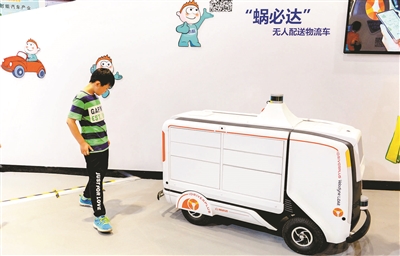 同樣“無人”的還有物流配送車。第三展廳展出的由北京智行者科技有限公司自主研發(fā)的無人配送物流車,是一個方方正正、外表“萌萌的”白色小貨車,卻能在辦公園區(qū)、工業(yè)園區(qū)、景區(qū)、校園等限定場景獨(dú)立完成“最后一公里”的配送。