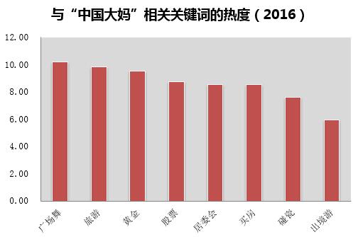 而這些涉及“大媽”的新聞和文章中,出現(xiàn)最多的關(guān)鍵詞就是廣場舞、旅游、黃金、股票、居委會。