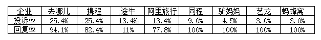 2017年2月旅游企業(yè)投訴回復(fù)率